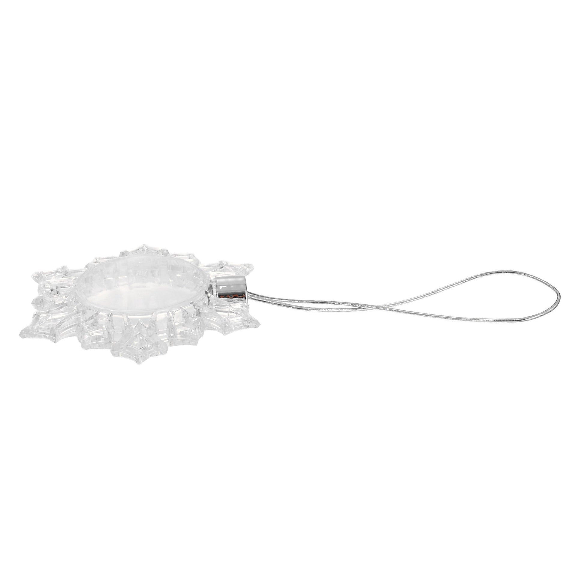 Acest ornament transparent în formă de fulg de zăpadă este creat pentru cei care doresc cadouri personalizate și decorațiuni unice. Forma clasică, inspirată de fulgii de iarnă, îl transformă într-o piesă decorativă elegantă, perfectă pentru brad sau pentru aranjamente tematice. Plasticul transparent oferă reflexii clare în lumina instalațiilor, creând un efect vizual deosebit.