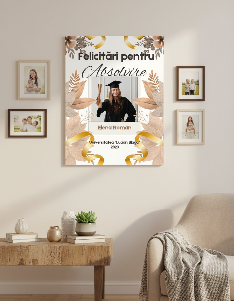 Acest tablou este modalitatea perfectă de a marca succesul, efortul și emoția momentului absolvirii într-un mod stilat și memorabil.