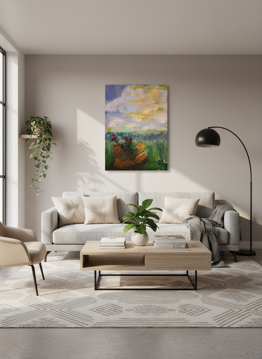 Tabloul este ideal pentru expunere în living, birou sau spații creative, aducând un punct focal original și plin de expresivitate. Pentru cei care doresc aceeași imagine, dar într-o variantă mai accesibilă sau adaptată spațiului, lucrarea poate fi comandată și sub formă de print pe canvas, păstrând farmecul și detaliile originale ale picturii.